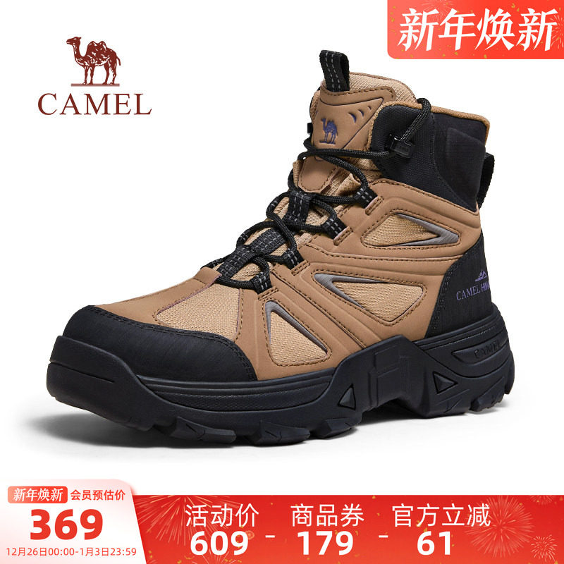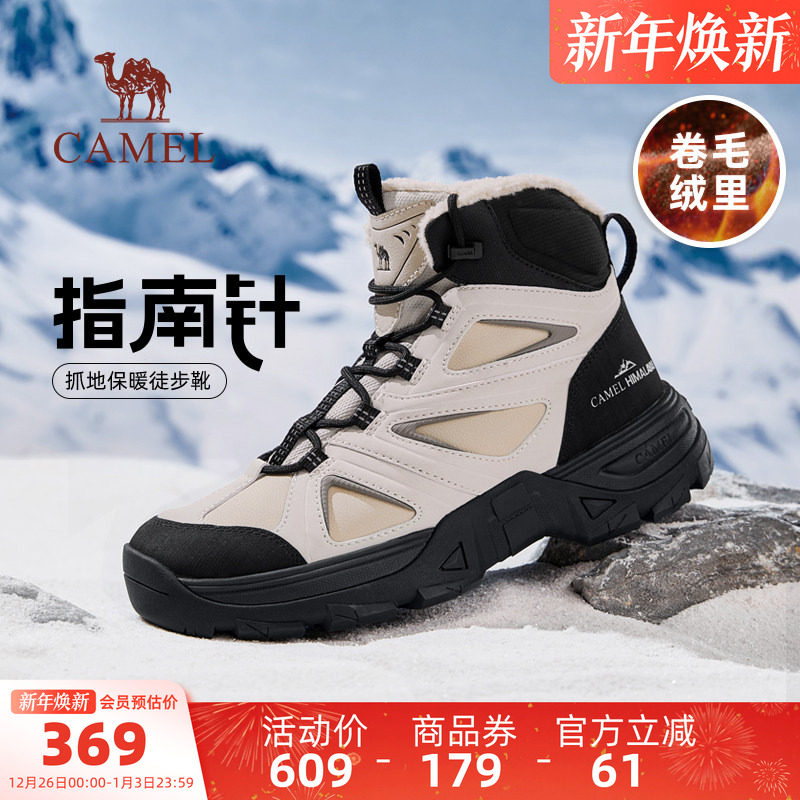 骆驼男鞋秋冬新款户外加绒保暖雪地靴防滑厚底徒步鞋高帮马丁靴男