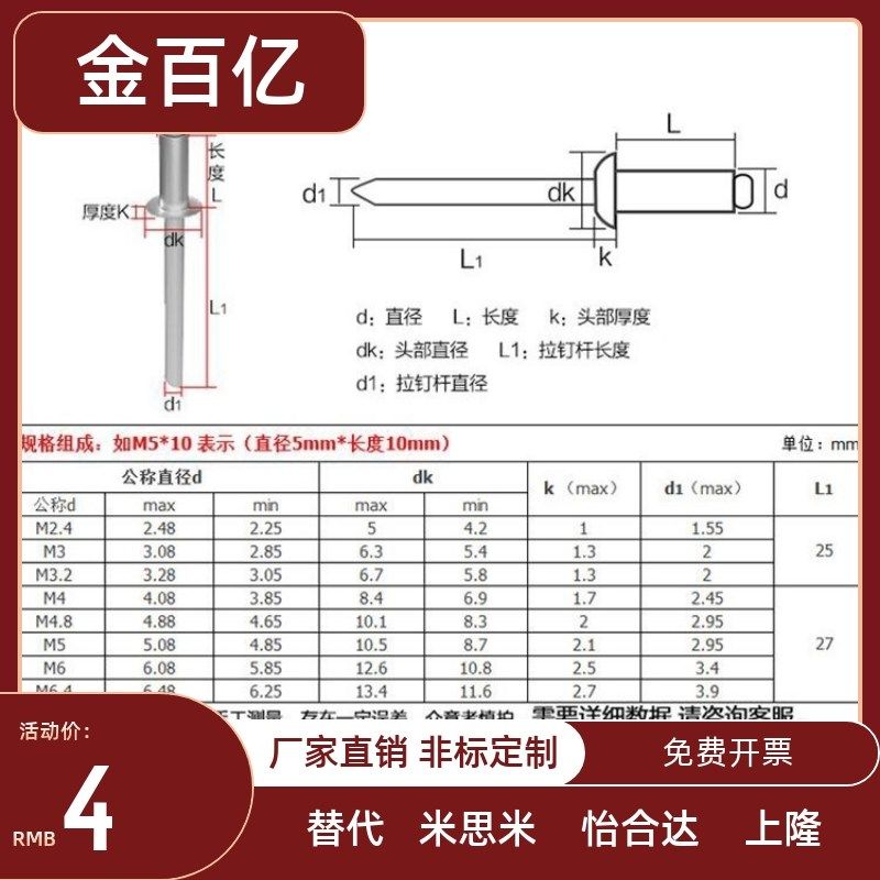 M3M4M5 M2.4 M6.4圆头抽芯铆钉铝制装潢钉铝拉钉*x6x8x10x12x20mm