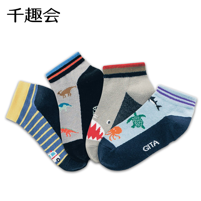 千趣会春夏秋儿童装短袜恐龙工程车图案帅气男童宝宝船袜袜子