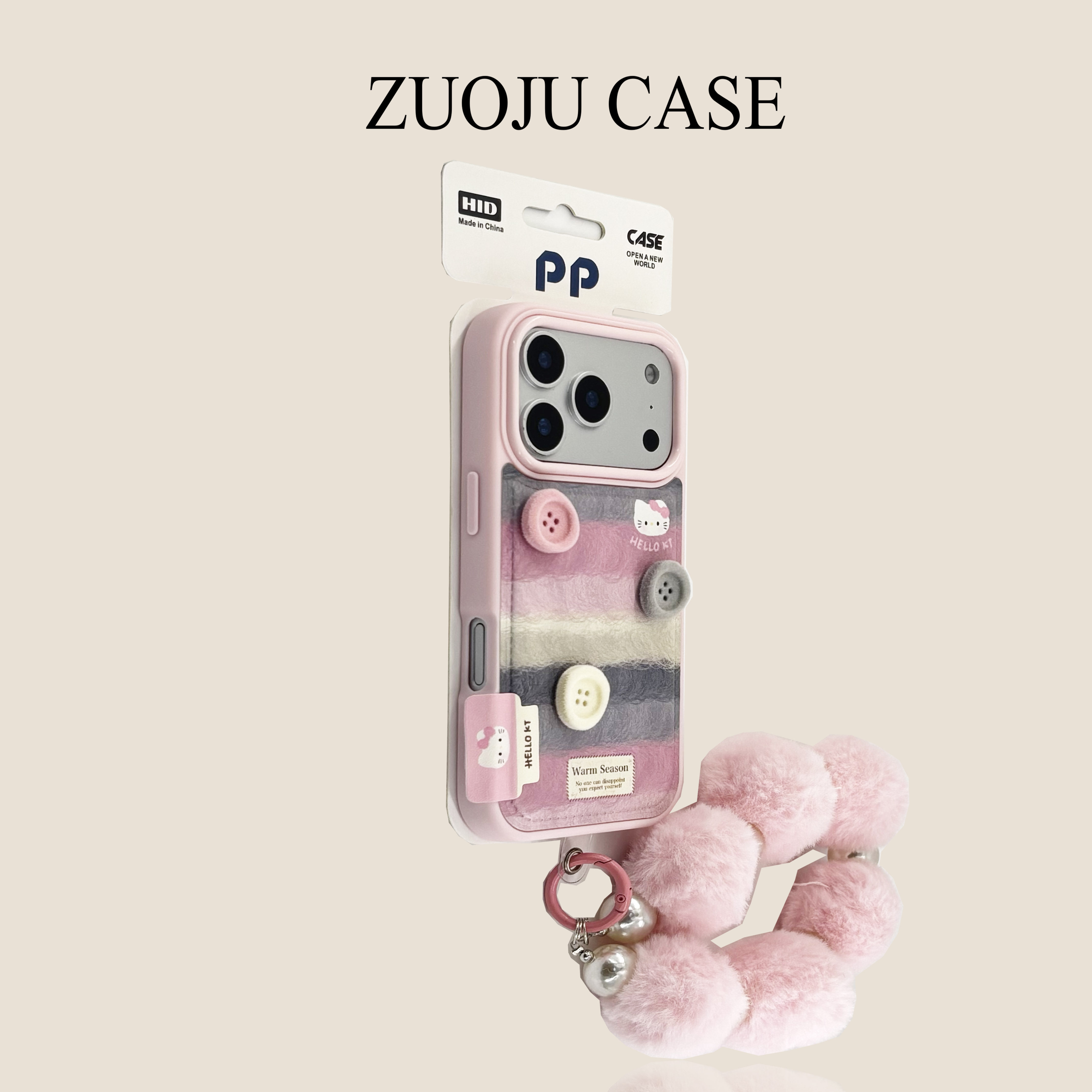 电镀银边粉底小碎花粉腕带适用苹果17手机壳新款iphone17promax硅胶全包套苹果16ProMax苹果15pro防摔女14pro