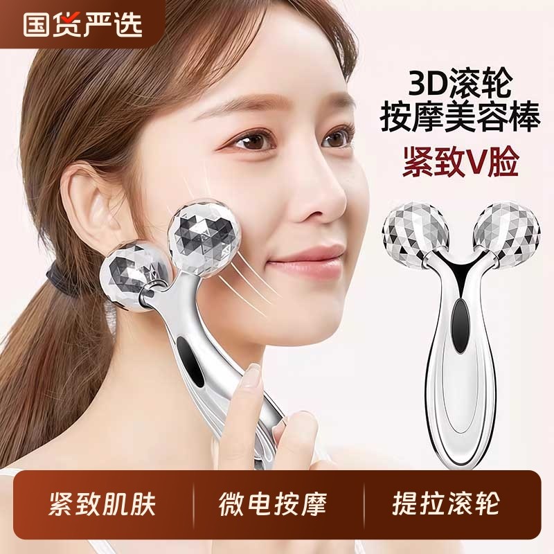 脸部按摩滚轮瘦脸神器瘦脸仪提拉紧致去面部V脸美容面膜家用滚珠