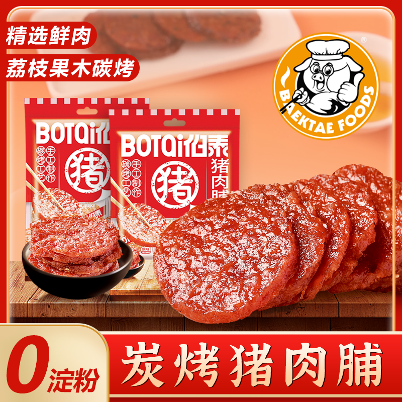 伯泰猪肉脯炭烤特产高蛋白肉脯零食居家办公室休闲小吃潮汕风味