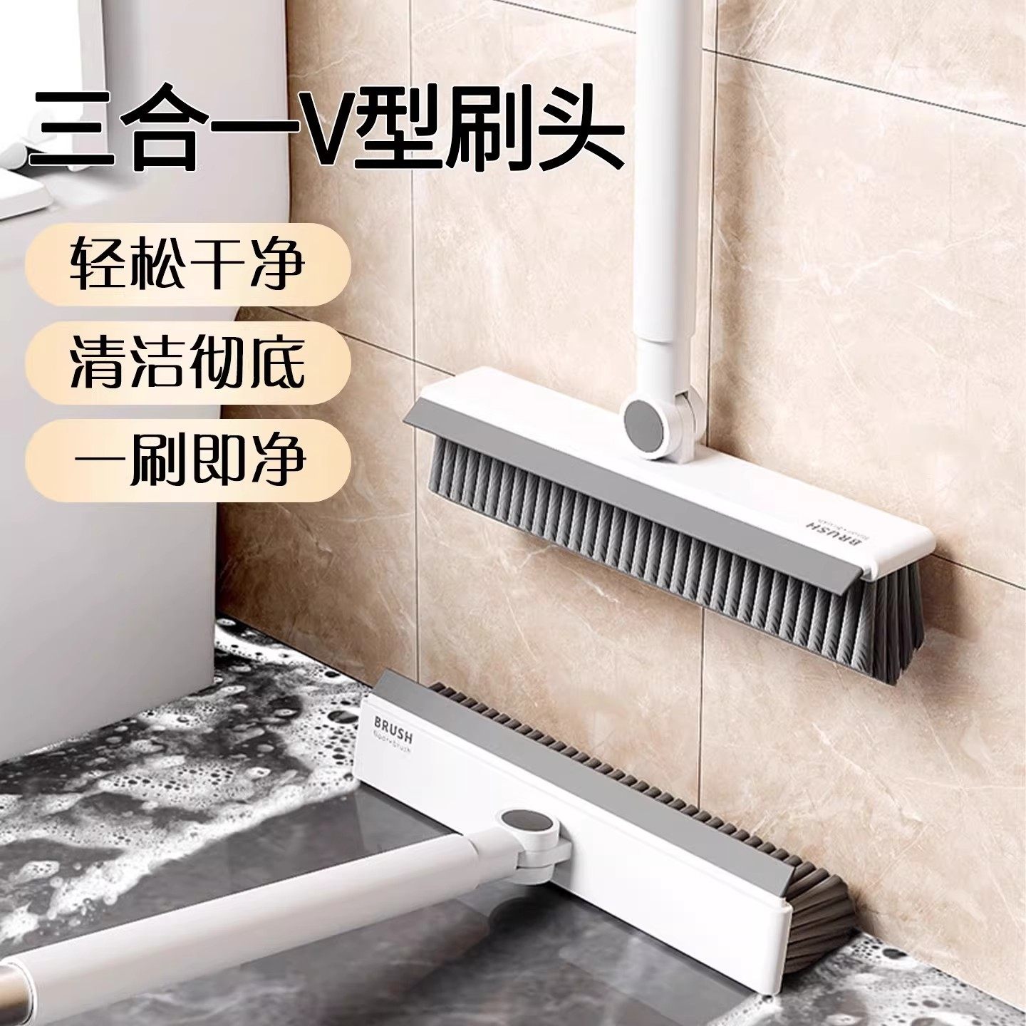 卫生间地板刷浴室清洁刷子长柄硬毛缝隙刷多功能无死角刮水二合一