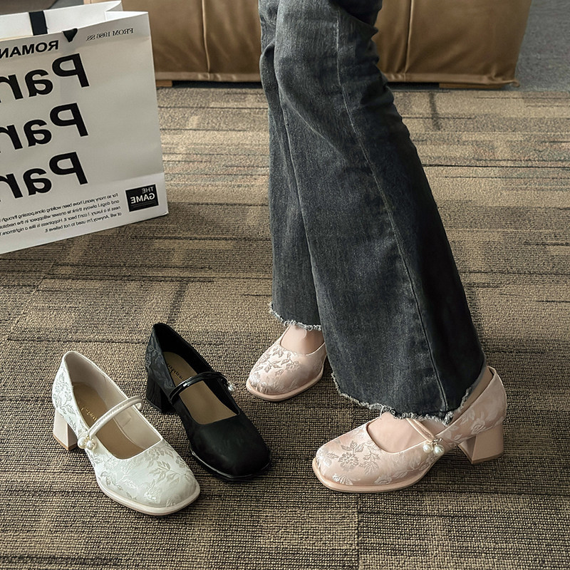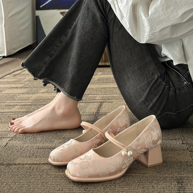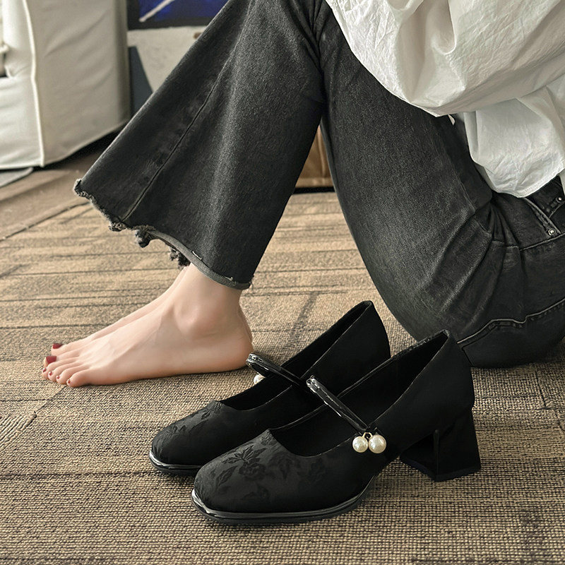 新中式国风玛丽珍单鞋女2026新款春秋配马面裙子旗袍鞋粗跟高跟鞋