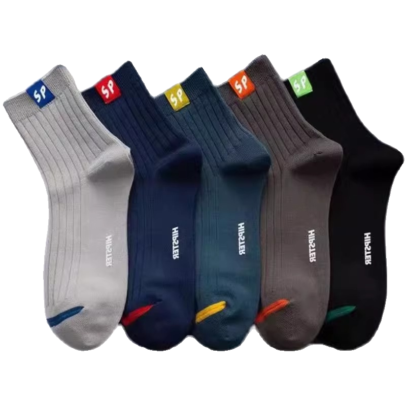 特步五双装中筒袜正品男子组合装舒适透气运动袜女士四季袜子