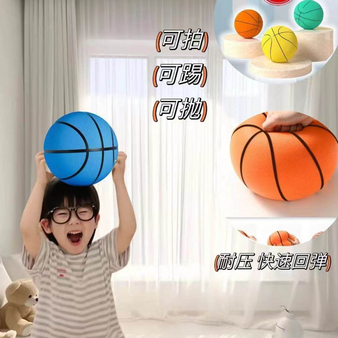 静音篮球专业不掉渣室内无声训练球5号7号成人家用拍拍消音海绵球
