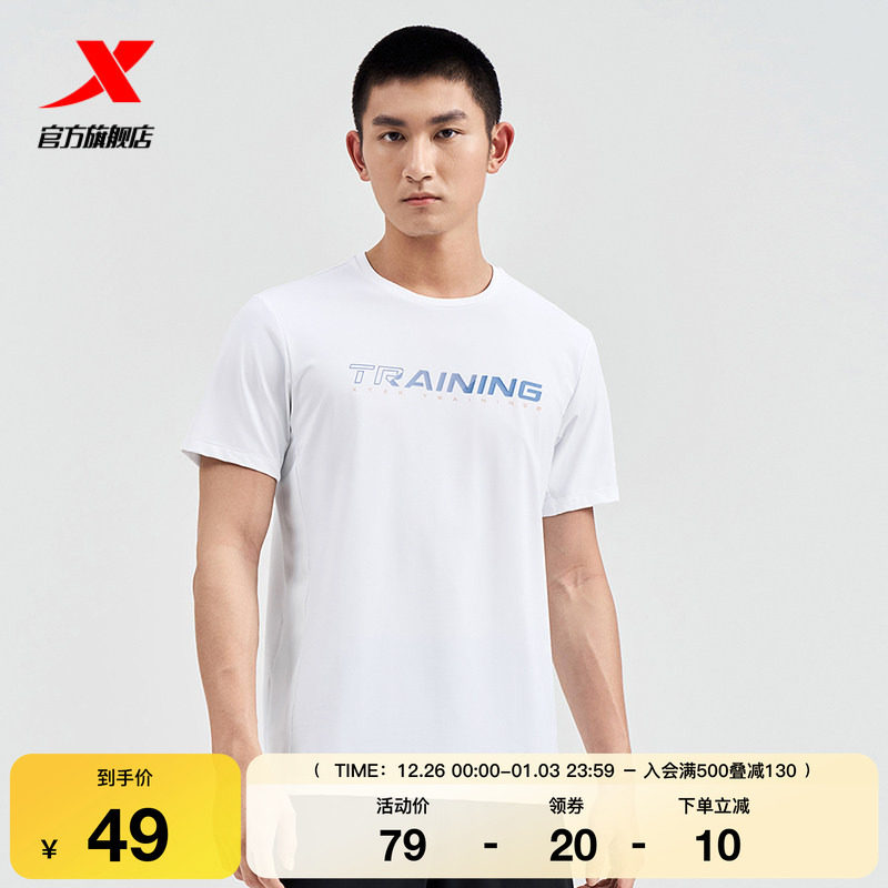 特步跑步短袖男士夏季新款训练健身透气上衣凉感冰丝圆领运动T恤
