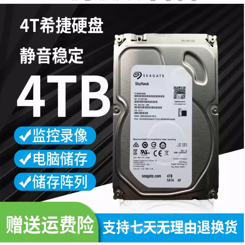 全新原装ST希捷ST4000VX005/VX000 4TB监控 5900转64M台式机硬盘