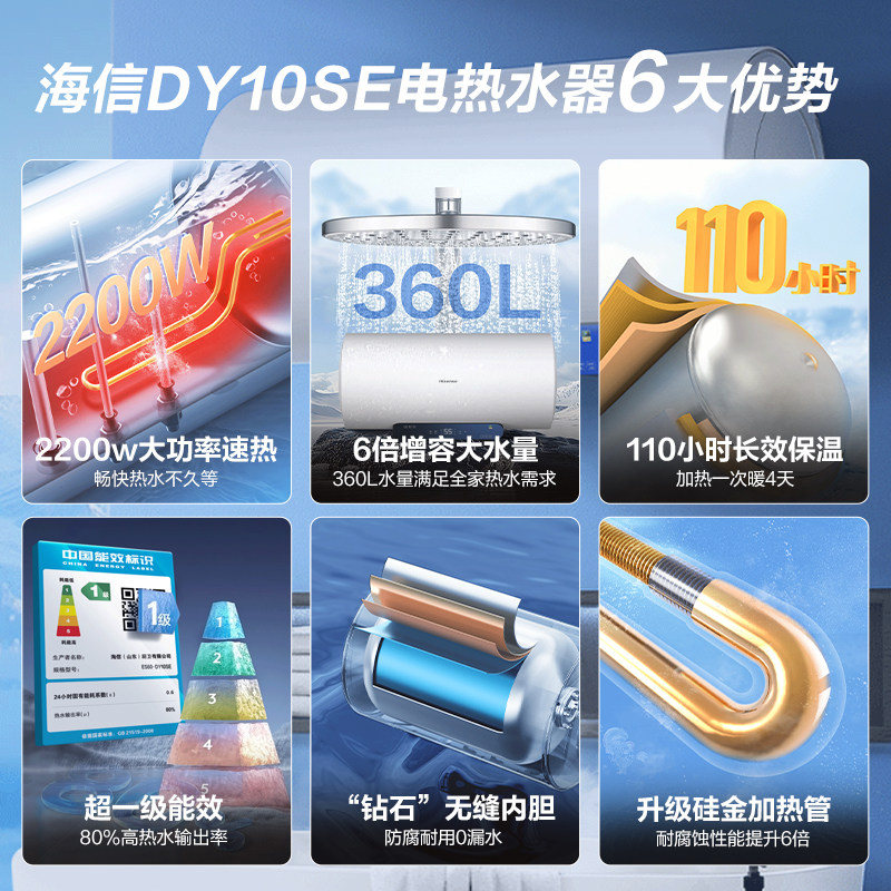海信60升电热水器一级能效家用洗澡卫生间出租速热换新补贴DY10SE