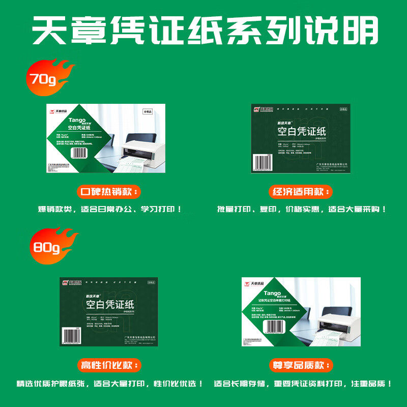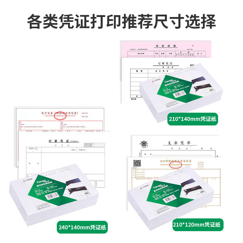 天章(TANGO)空白凭证纸210*140mm通用会计记账凭证KP-J101适用于用友金蝶财务软件空白单据打印纸80g 500张