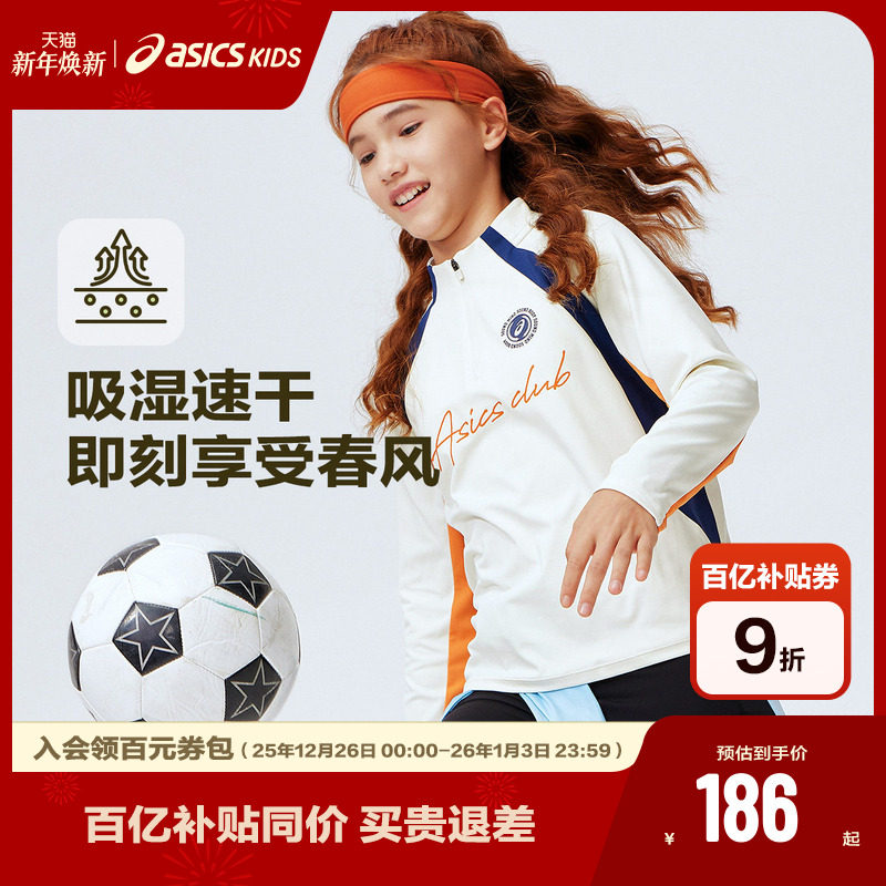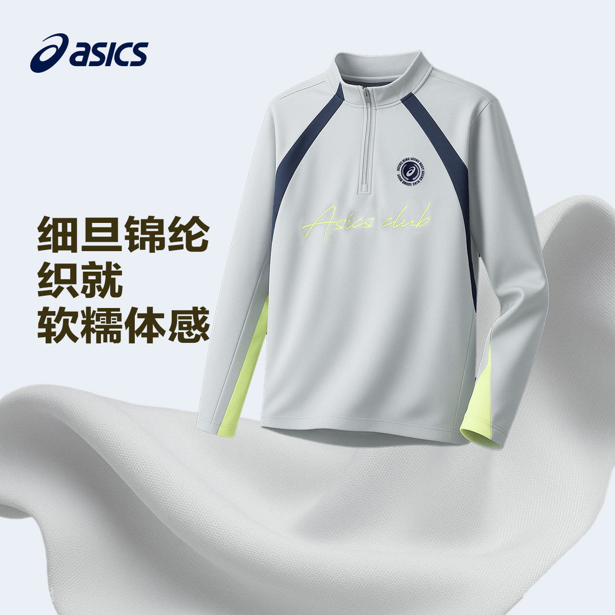 ASICS/亚瑟士儿童2026年新款半高领长袖撞色复古速干T恤舒适百搭