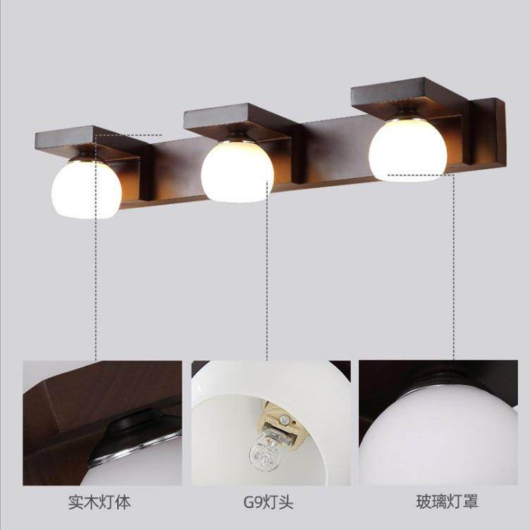 新中式led卫生间镜前灯浴室多头梳妆台镜柜灯胡桃木色卧室墙壁灯