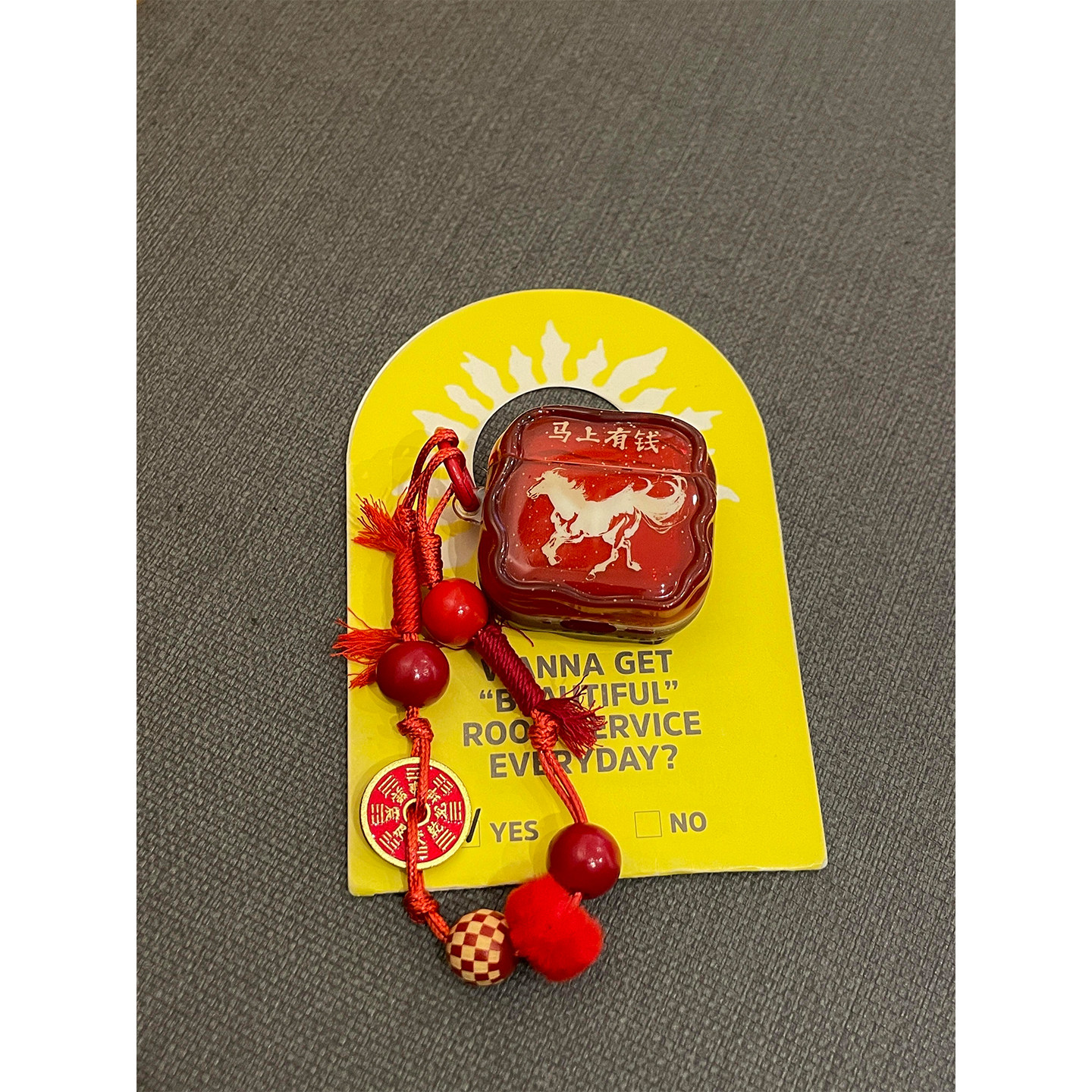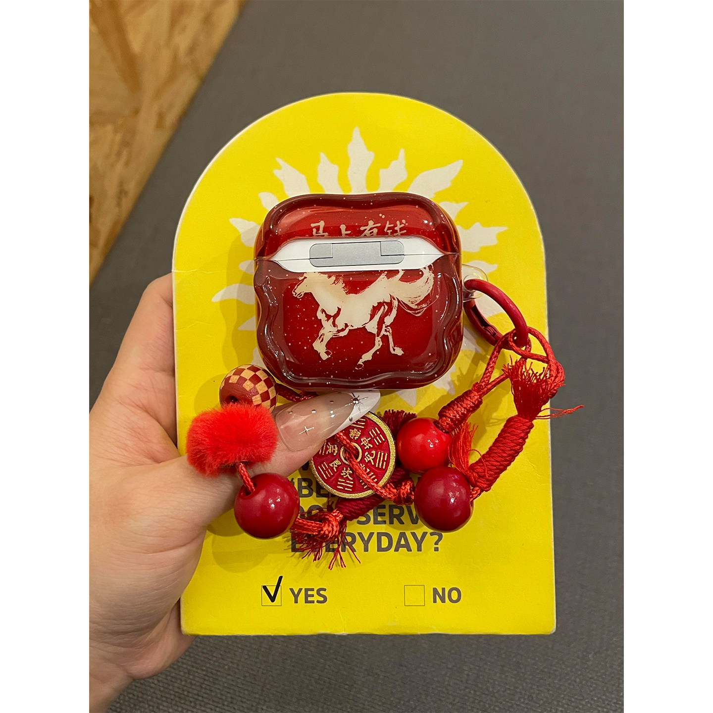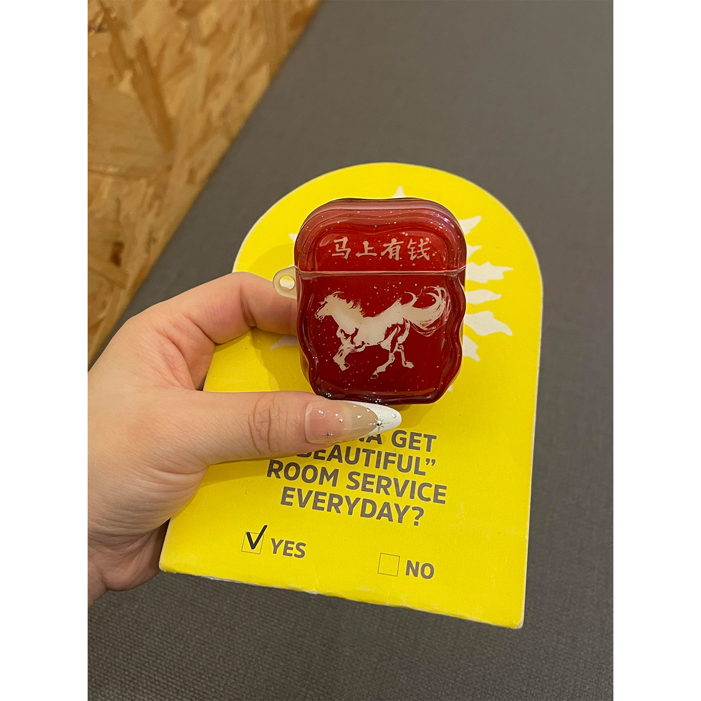 ins新年红马上有钱骏马奔腾适用AirPods4代耳机壳苹果AirPodsPro3代蓝牙1/2/3代软硅胶Pro2防摔套Pro三代女款