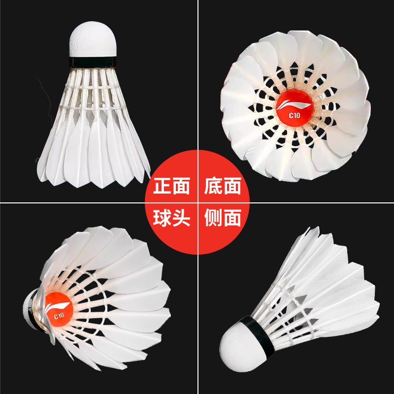 正品李宁C10羽毛球耐打飞行稳定专业球馆训练比赛用球12只装鸭毛