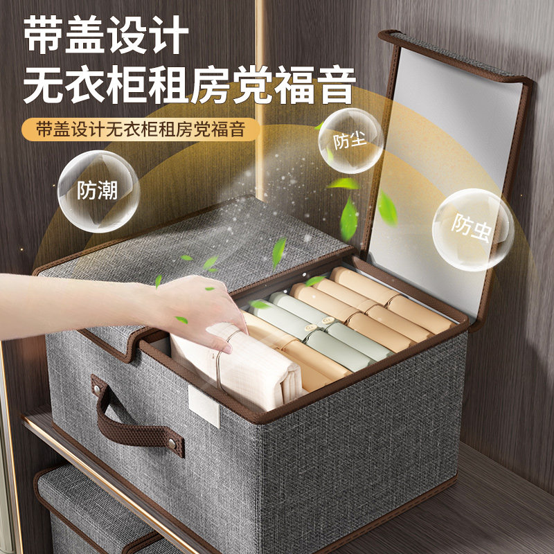 衣柜分层神器衣服收纳箱可水洗家用裤子整理盒筐布艺折叠储物箱