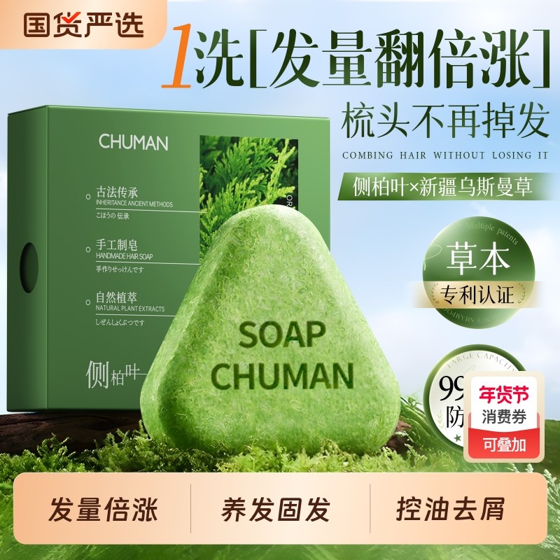 侧柏叶洗发皂洗头新疆乌斯曼草何首乌中药手工固发防断发控油去屑