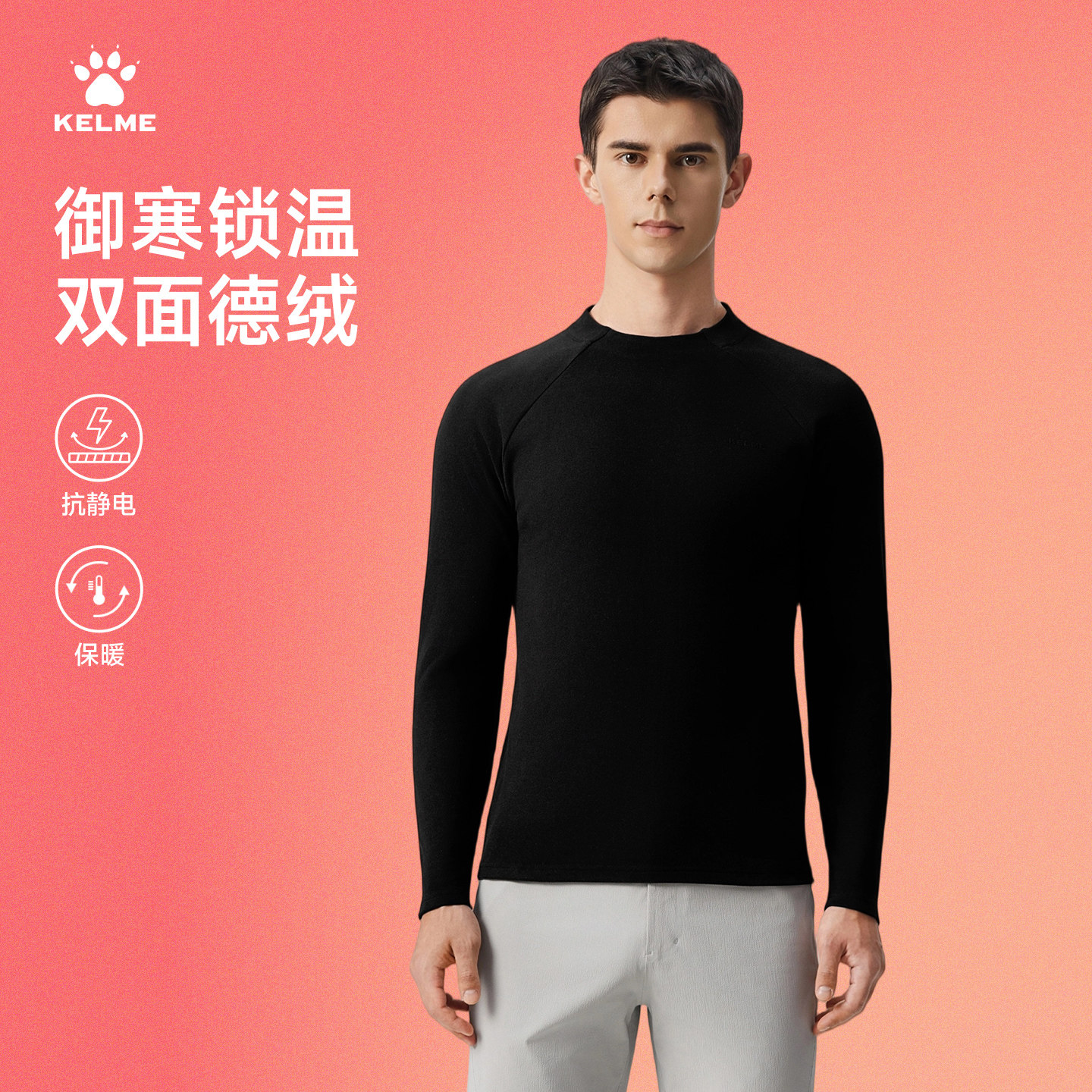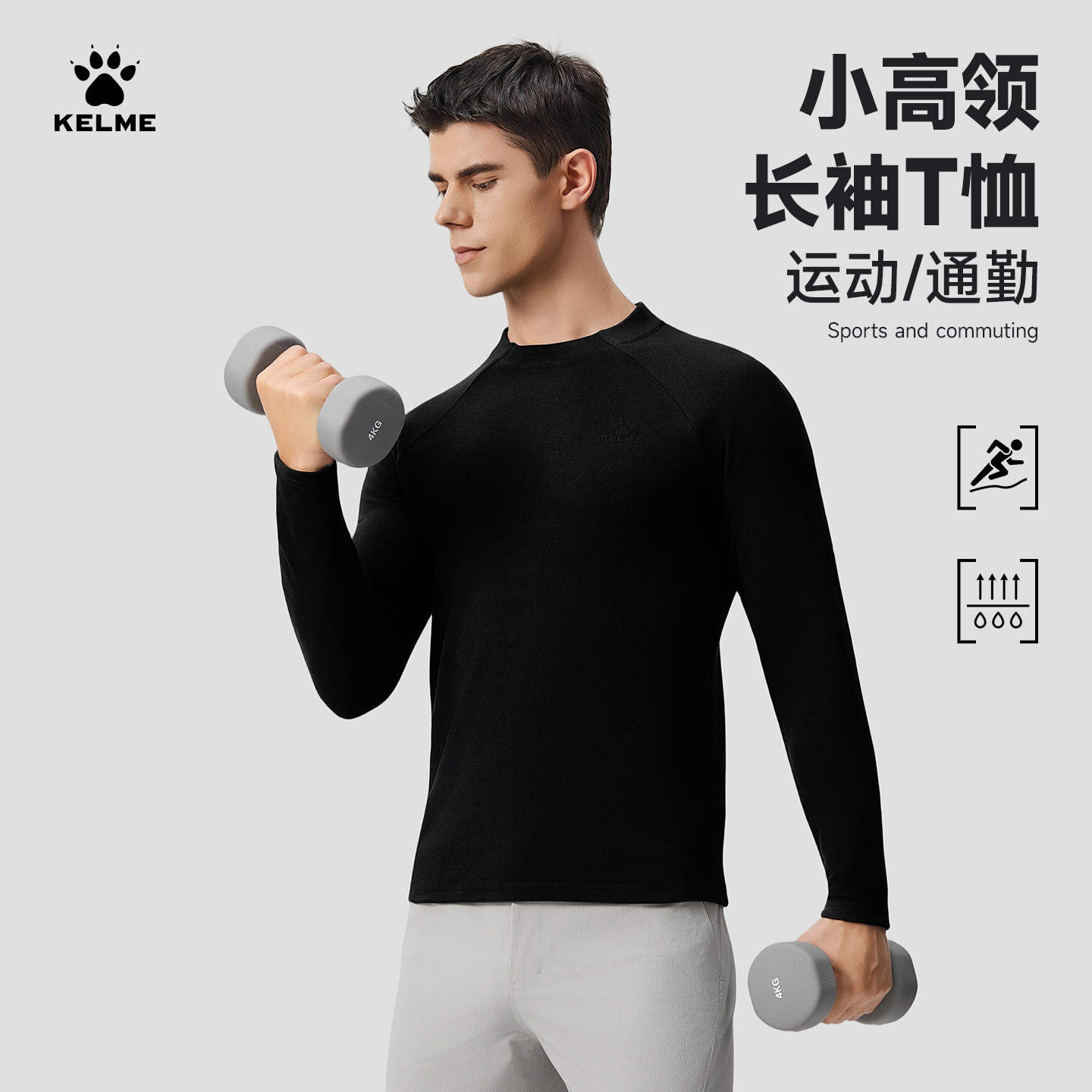 KELME卡尔美小高领德绒打底衫男2025秋冬纯色运动休闲保暖长袖t恤