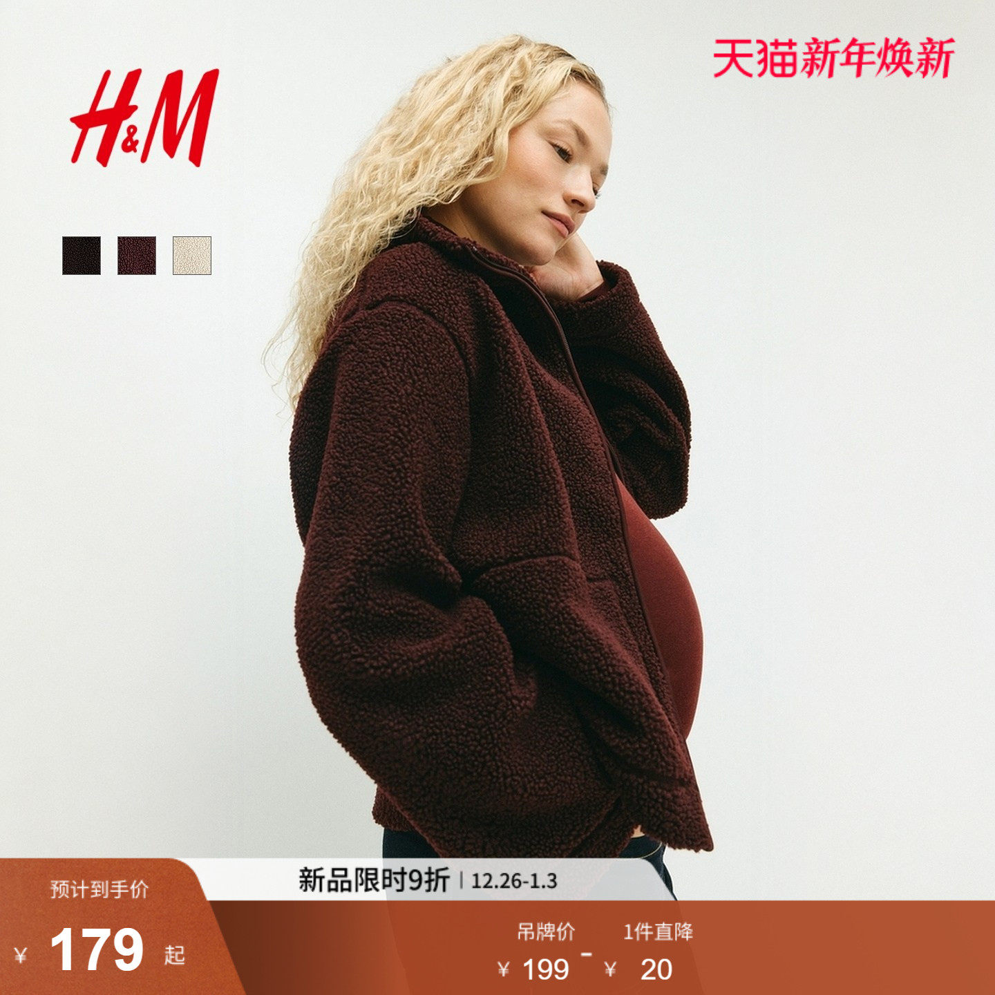 HM女装短外套2025冬新款拉链保暖泰迪绒摇粒绒酒红色开衫1308677