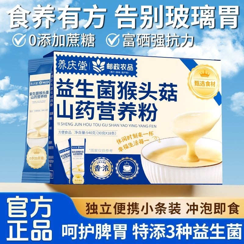 养庆堂邮政农品益生菌猴头菇米糊富硒山药粉养胃食品流食无糖代餐