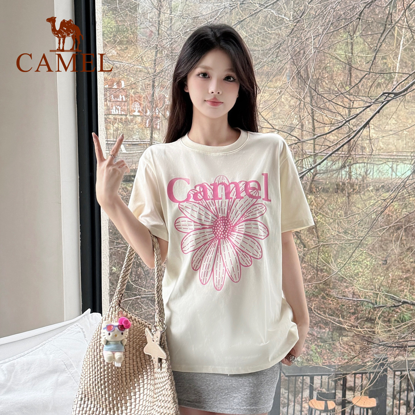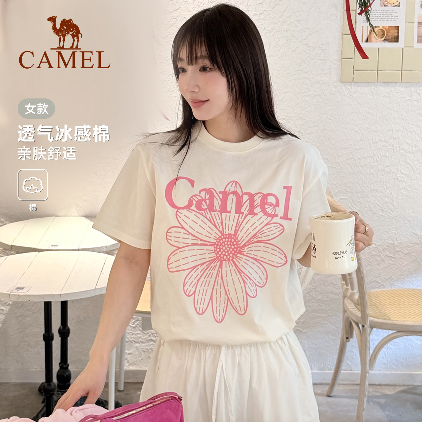 骆驼冰皮T神小雏菊T恤短袖2026夏季新款棉感宽松休闲韩系圆领上衣