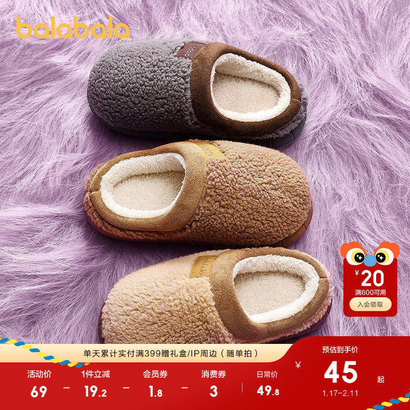 巴拉巴拉童鞋儿童拖鞋男女童2025年新款冬季加绒保暖棉鞋舒适百搭