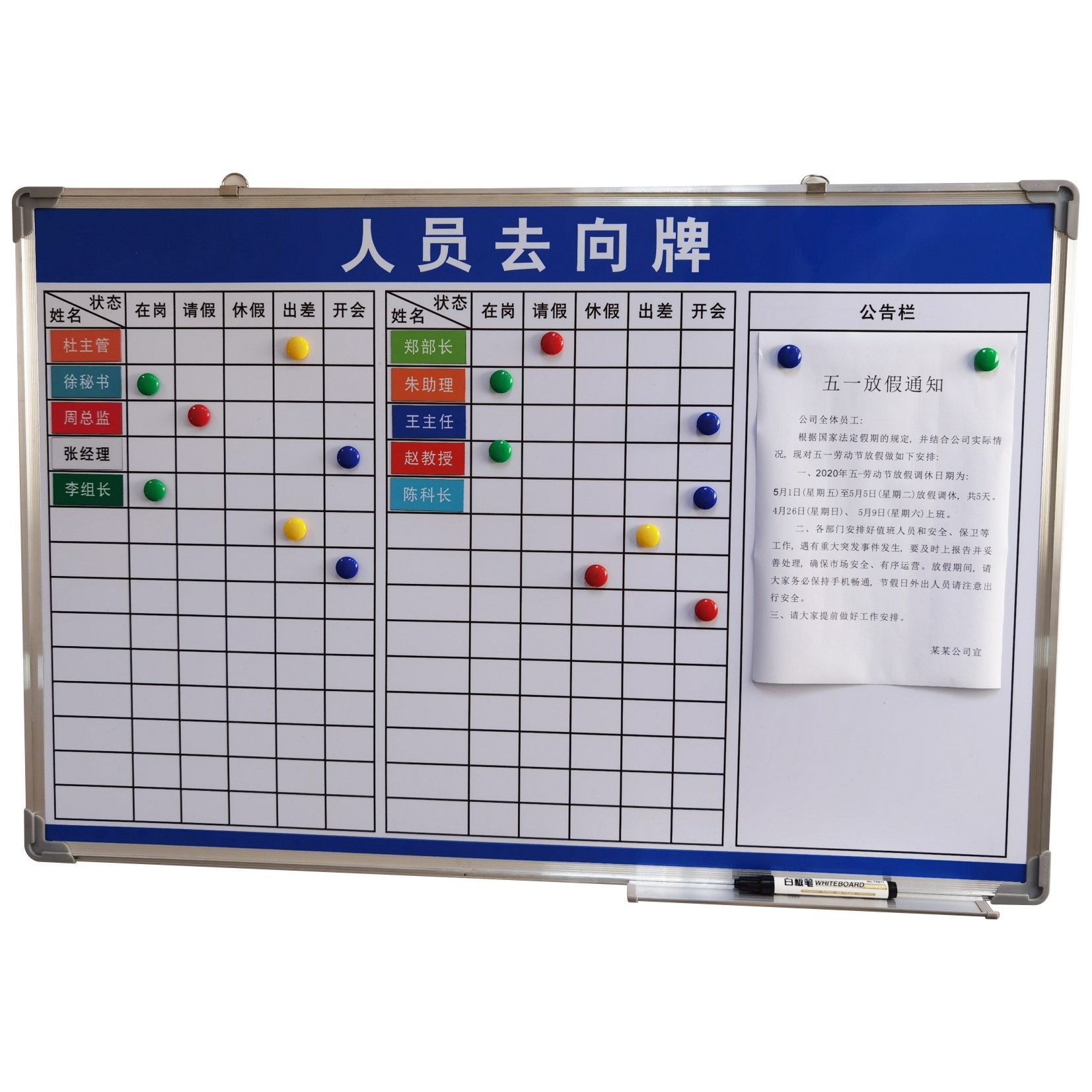 工作人员工去向公示牌磁性易擦硬白板移动办公司车间生产管理看板