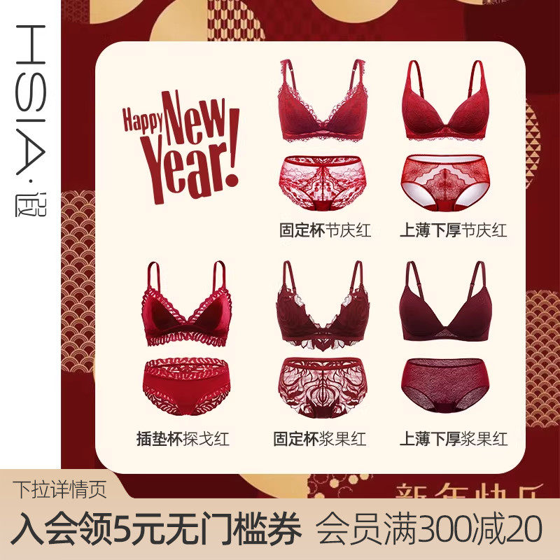 遐中小胸无钢圈聚拢文胸送礼本命年新娘结婚红色内衣内裤套装女