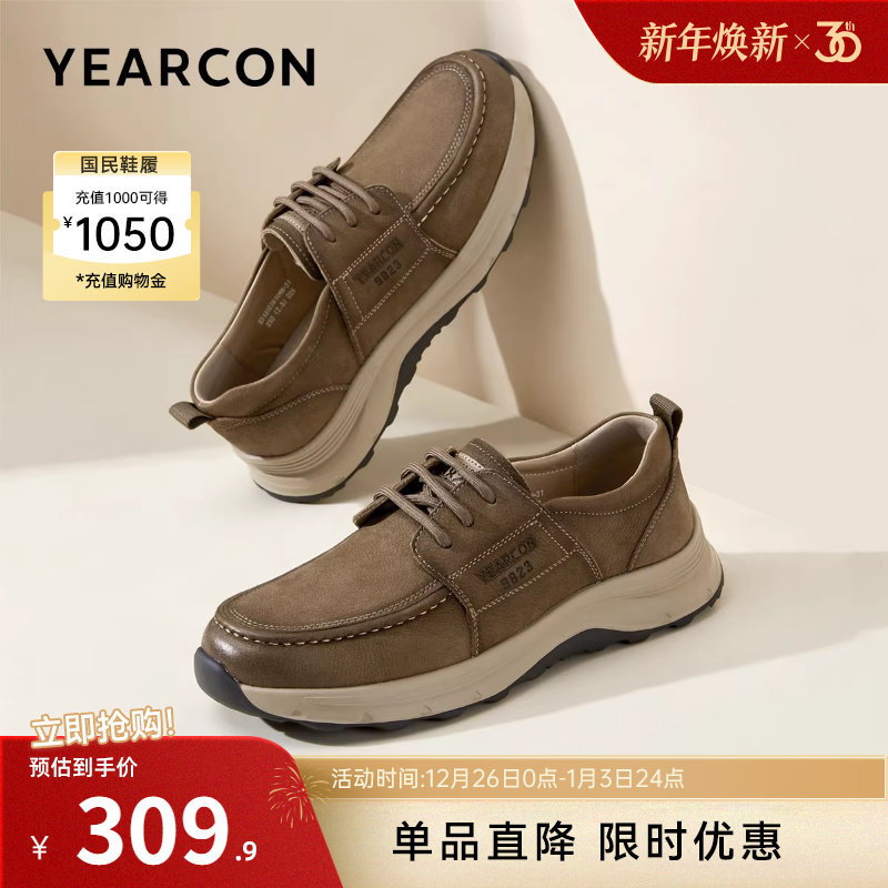 意尔康轻羽男鞋2025新款真皮户外休闲鞋皮鞋软底男士英伦风工装鞋