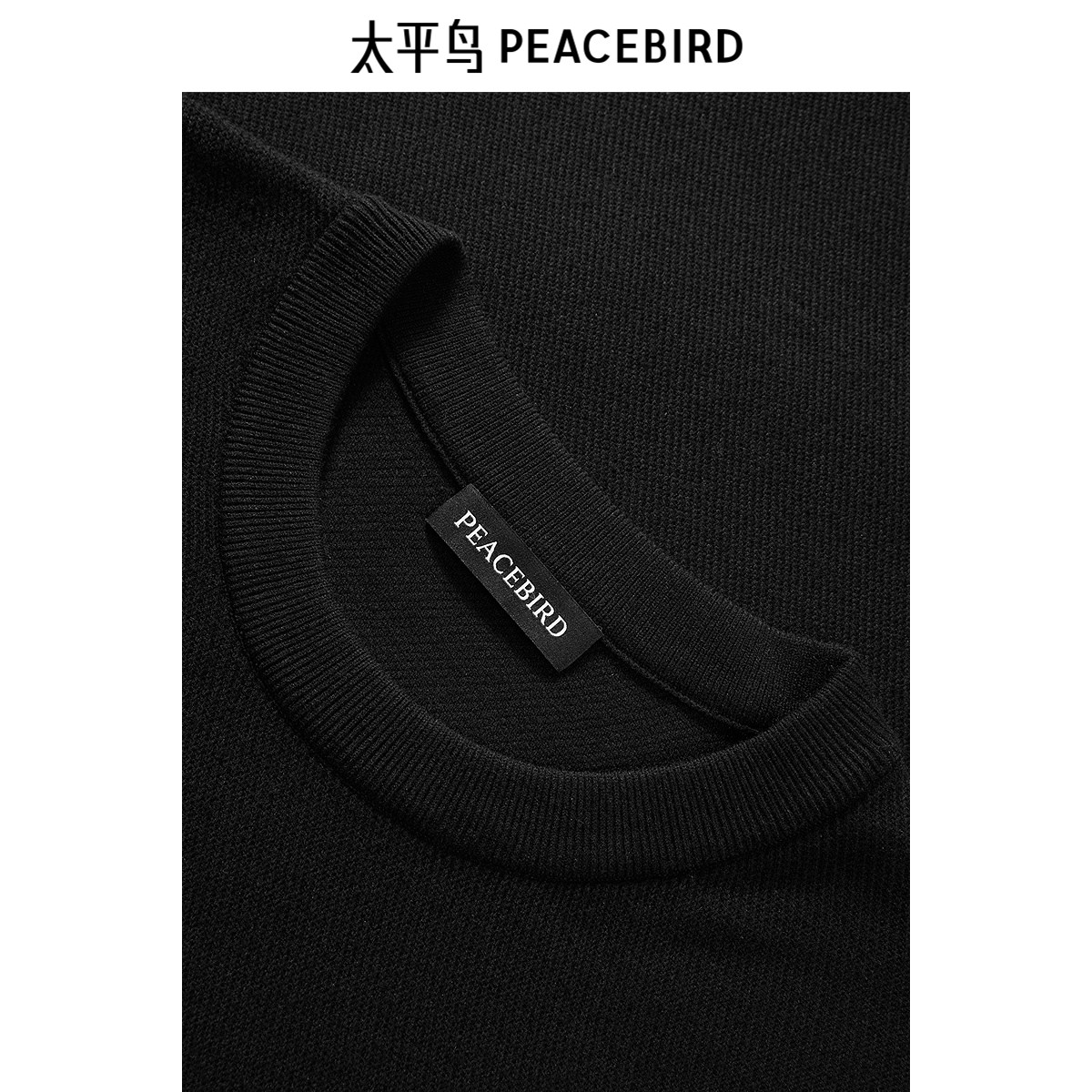 太平鸟男装毛衣冬季修身肌理针织衫潮圆领套头纯色打底针织毛衣