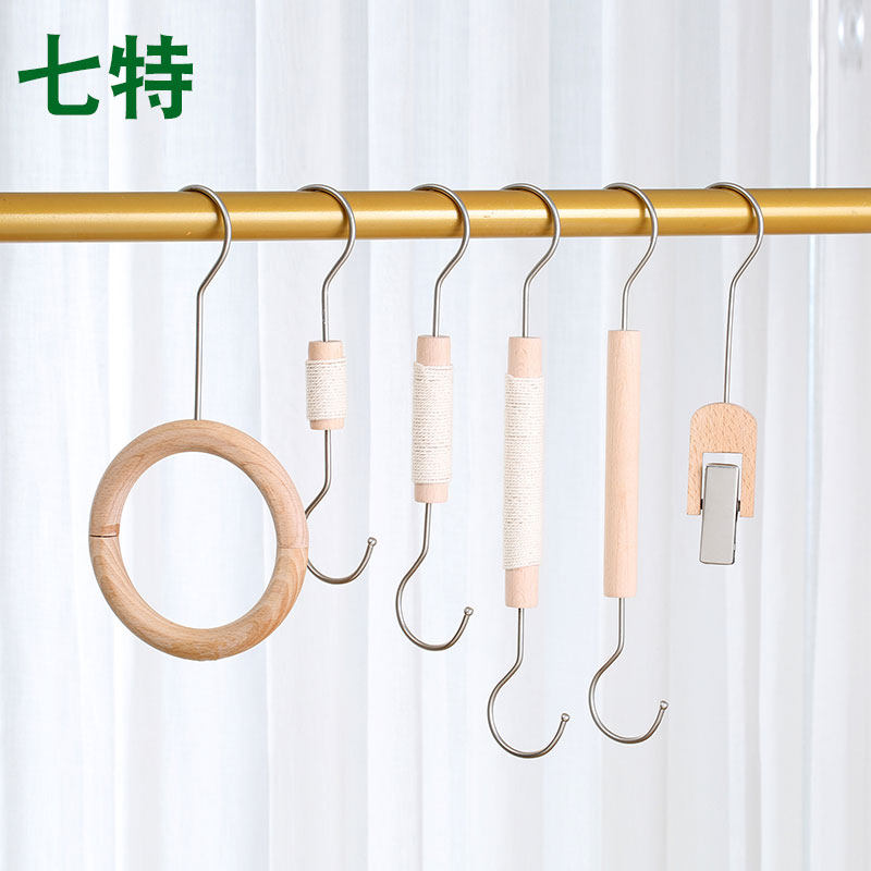 榉木挂钩S挂钩服装店衣架挂衣钩圆木衣服裤架夹围巾架棒道具展示