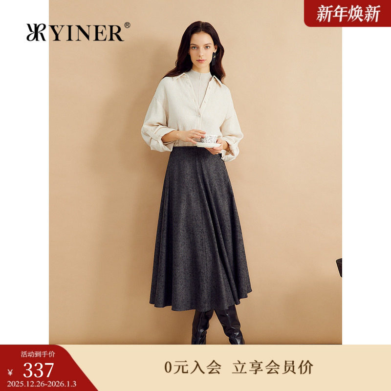 YINER音儿女装秋季法式休闲肌理感亚麻长袖衬衫