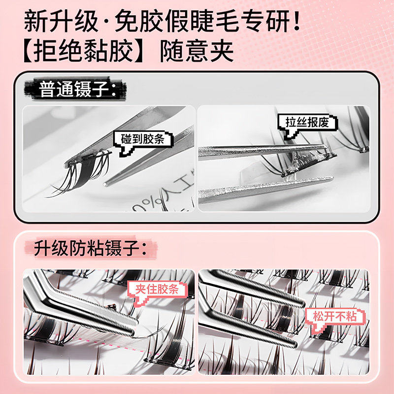美睫夹不粘镊子老手贴睫毛夹专用金羽夹假睫毛套装防粘平头免胶