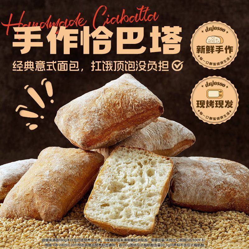 恰巴塔全麦面包低脂手工无蔗糖健身饱腹代餐早餐粗粮欧三明治零食