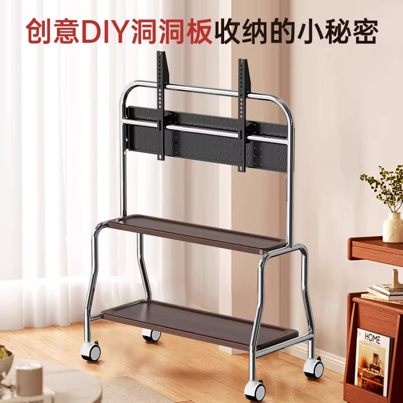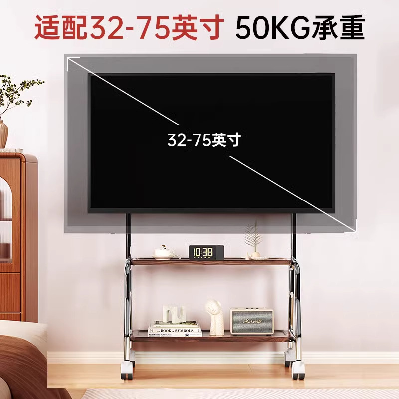 电视机落地支架可移动不锈钢带轮客厅卧室艺术推车6575寸通用挂架