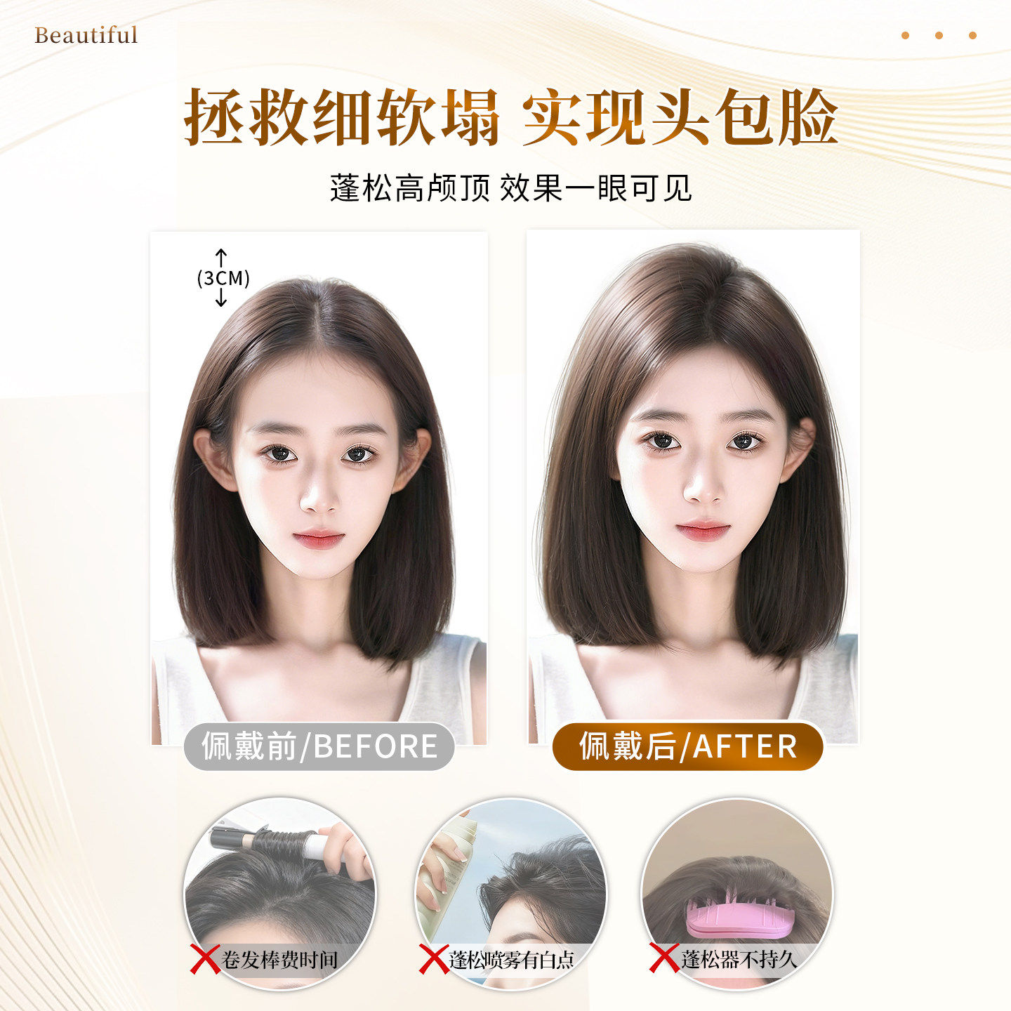 不用戴发网假发女片头顶补发增发量蓬松高颅顶遮白发大波浪长卷发