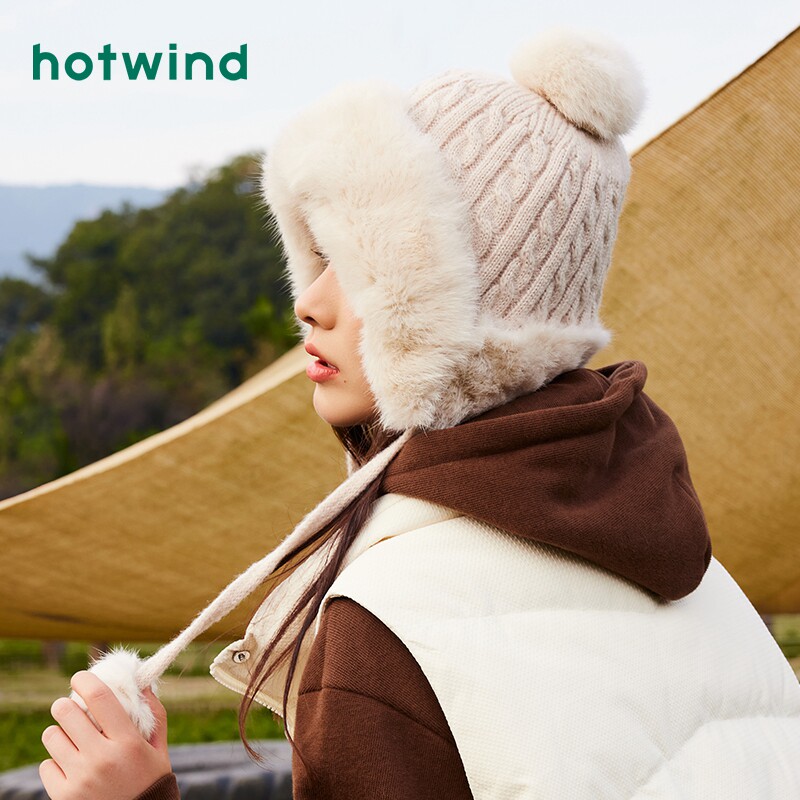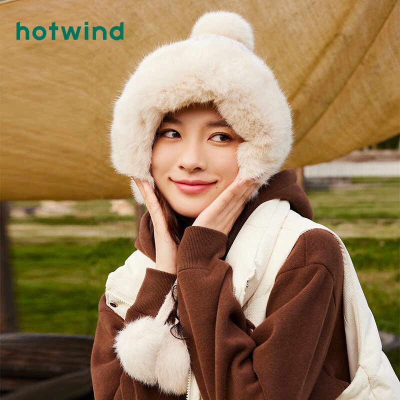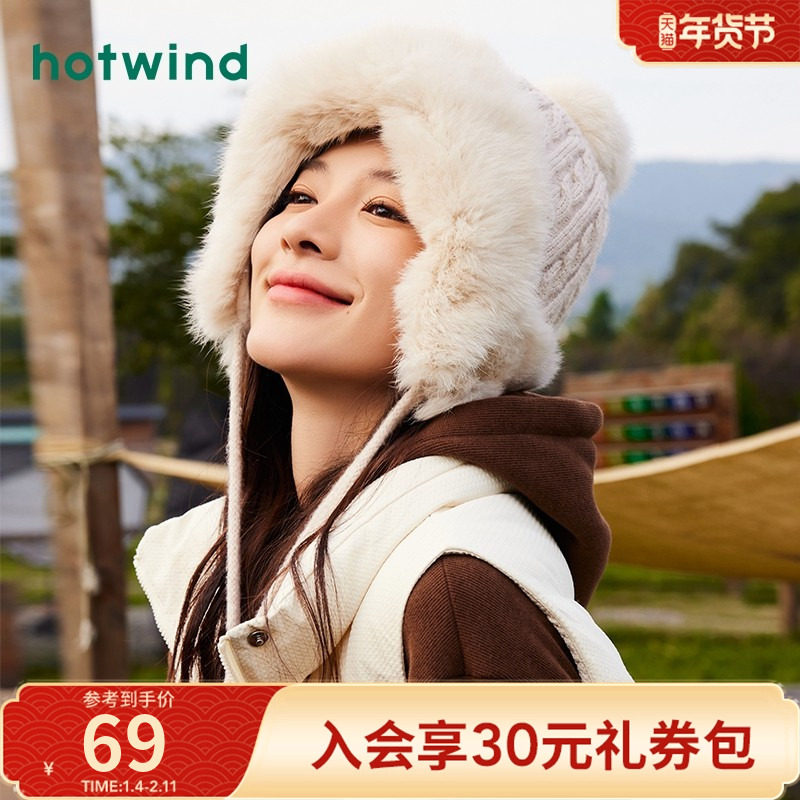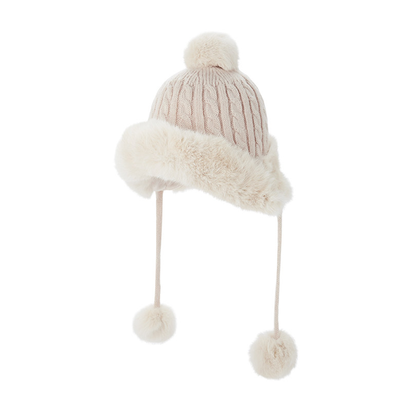 热风帽子女士保暖毛毛护耳帽可爱毛茸茸毛线帽子2024年冬季新款