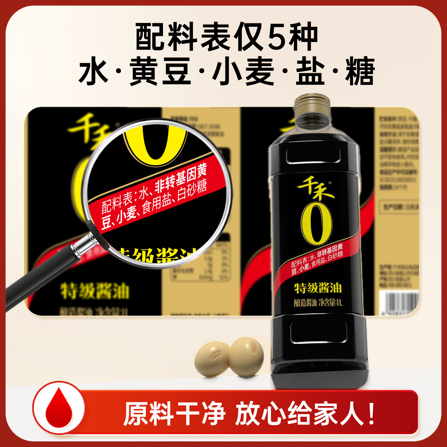 千禾酱油1L酿造家用组合装炒菜红烧调味调味品金标味精黄豆头道
