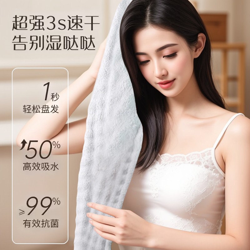 干发帽女吸水速干擦头干发毛巾包边双面可用加厚成人女双层速干帽