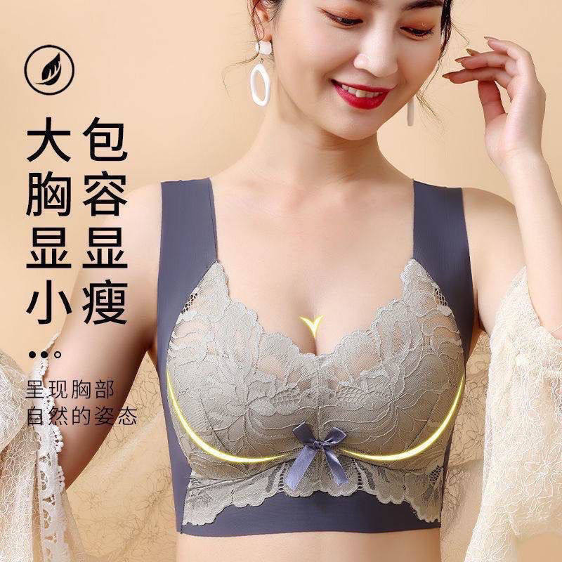 润微提拉女王内衣女大胸显小无痕大码调整防下垂收副乳粉底液文胸