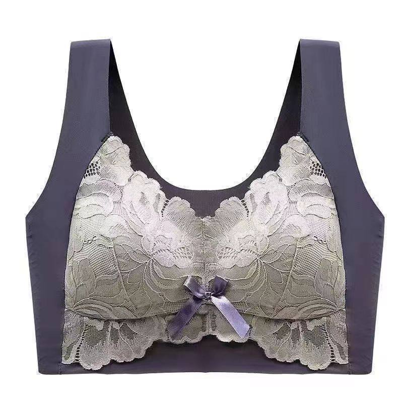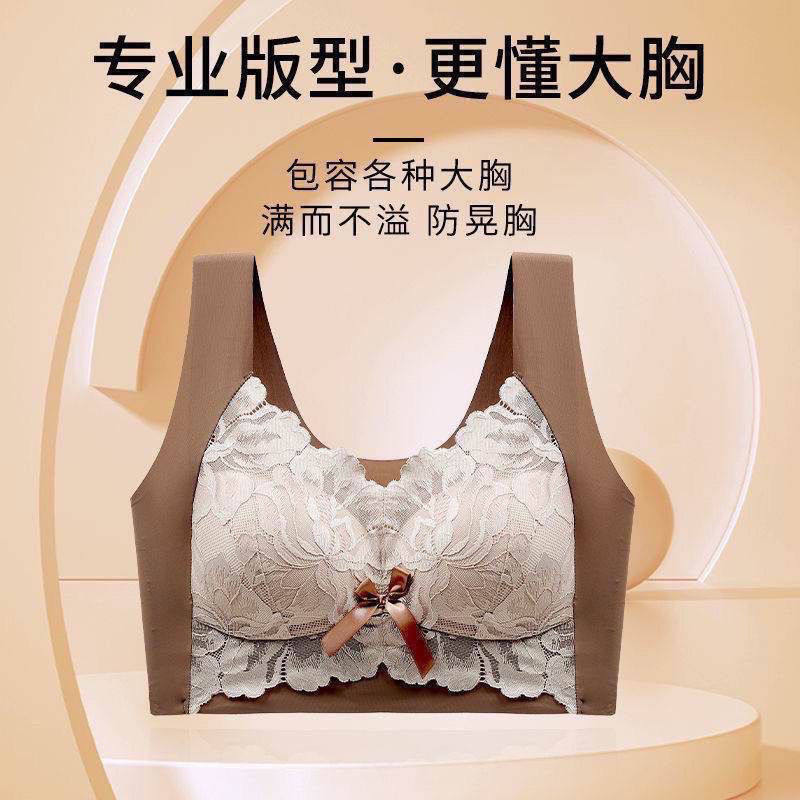润微茶肌内衣女士大胸显小薄款收副乳聚拢大码上托防下垂蕾丝文胸