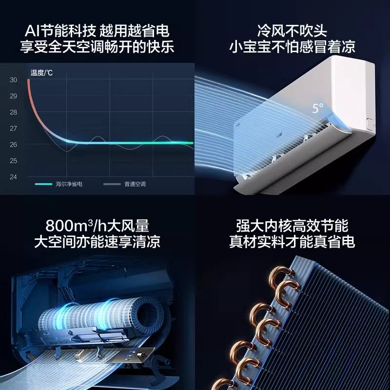 海尔空调净省电Plus新一级能效小红花家用1.5匹变频冷暖挂机98