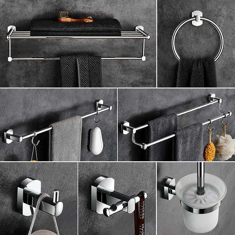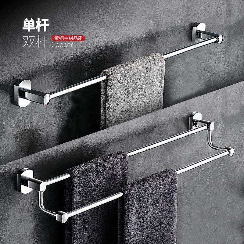 全铜浴室五金挂件浴巾架套装双层毛巾架单杆双杆卫生间置物架套装
