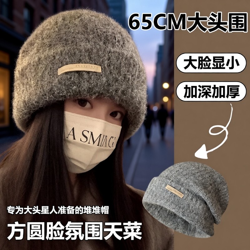 大头围帽子冬男潮毛线帽秋冬季新款百搭针织帽潮牌保暖包头冷帽女