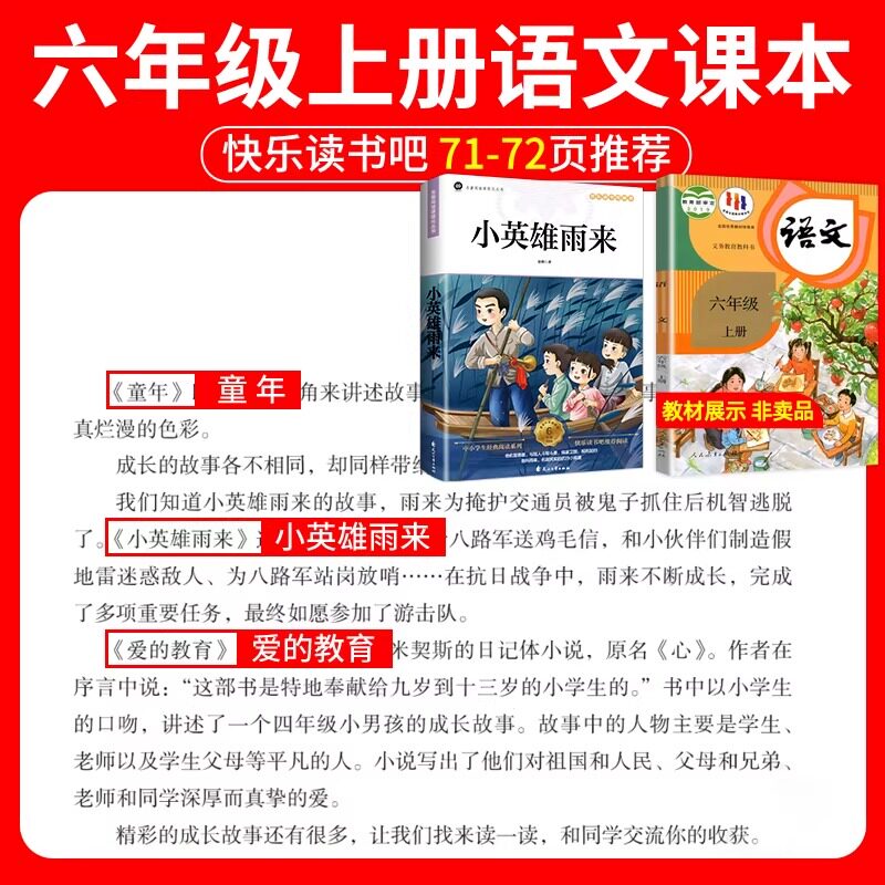 小英雄雨来六年级上册必读的课外书管桦原著正版完整版爱的教育童年全套3册小学快乐读书吧推荐阅读必读经典书人民教育文学出版社