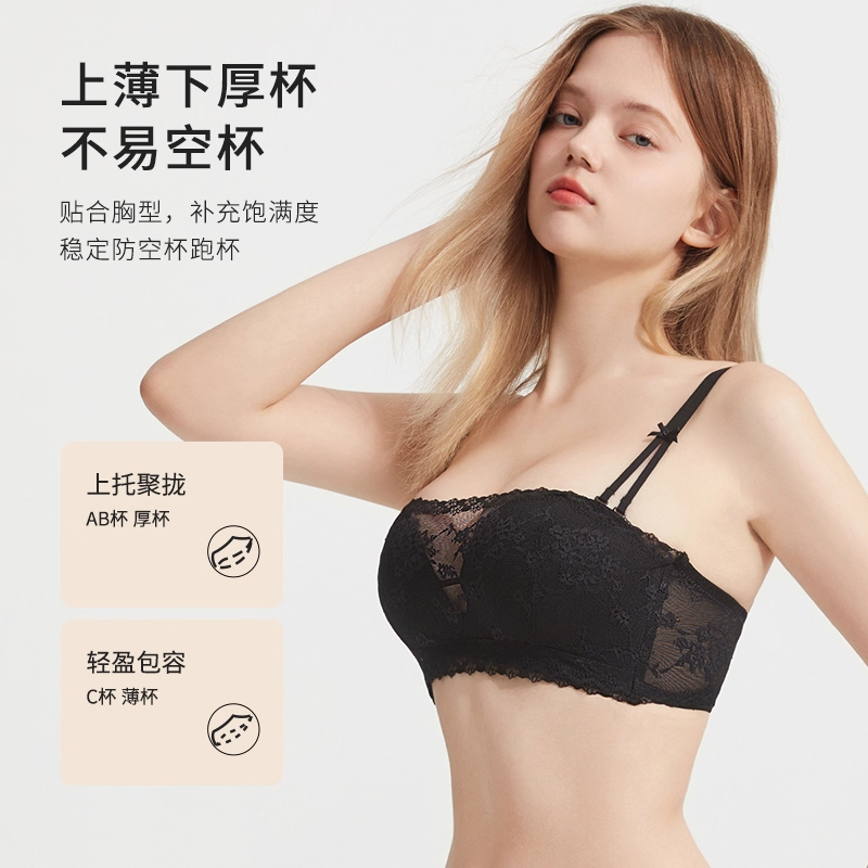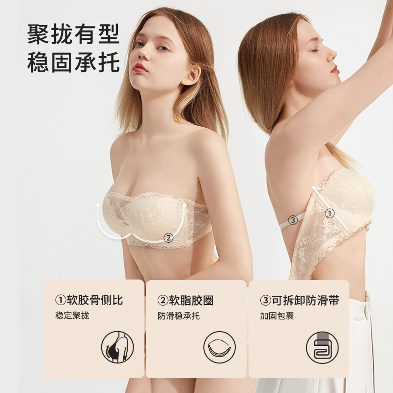 都市丽人防走光蕾丝抹胸裹胸内衣女小胸聚拢可拆卸肩带防滑文胸