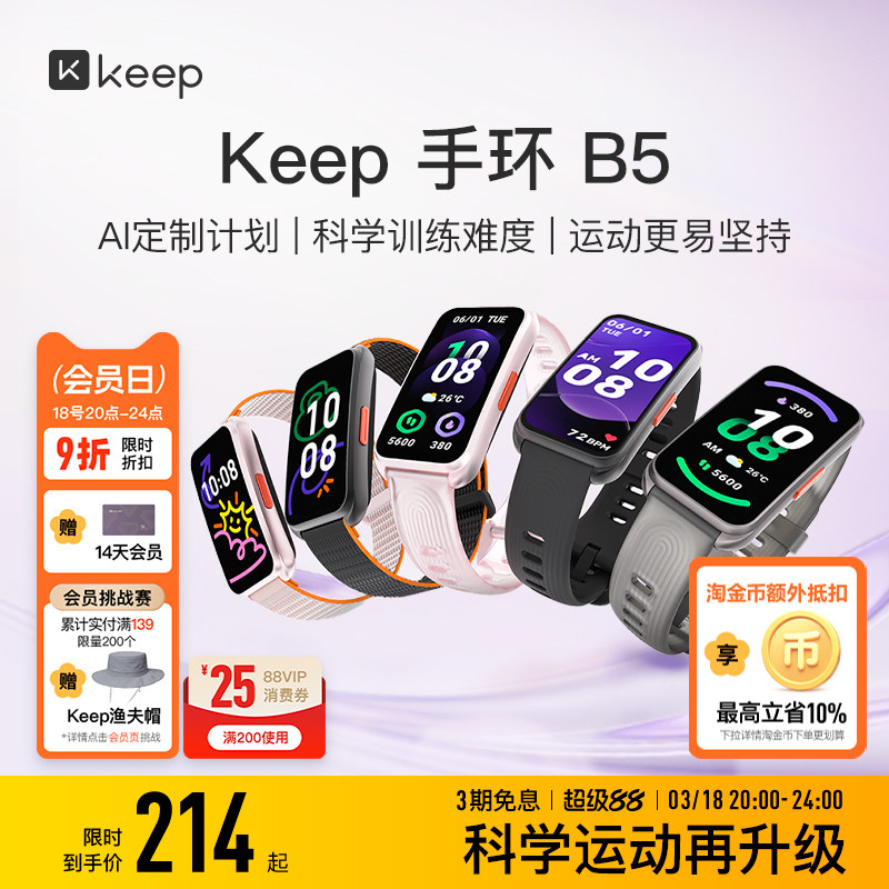 【礼物】Keep智能手环B5运动健康羽毛球防水心率睡眠智能运动手环