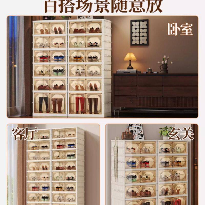 鞋柜收纳柜一体靠墙透明鞋子收纳神器家用门口塑料鞋架鞋盒收纳盒