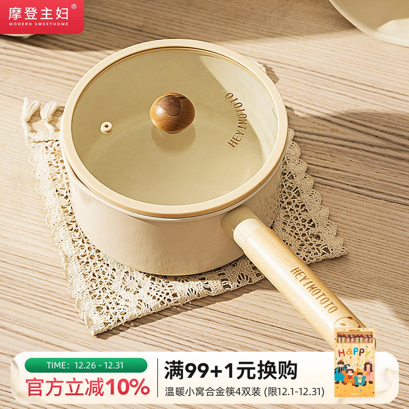 摩登主妇熊猫奶锅婴儿宝宝辅食锅煎煮一体泡面汤锅不粘锅陶瓷小锅