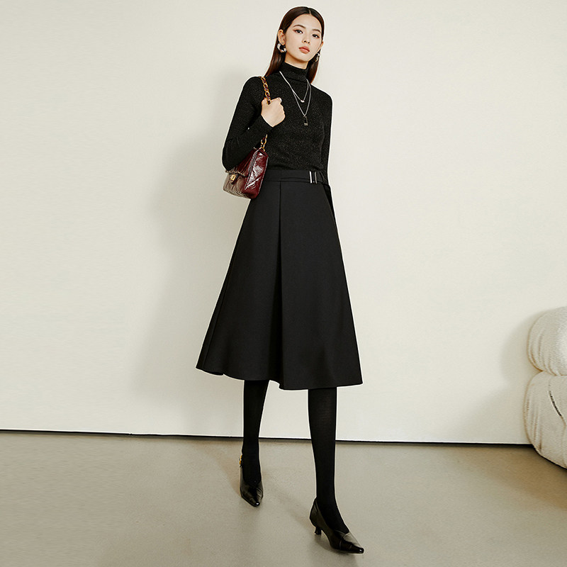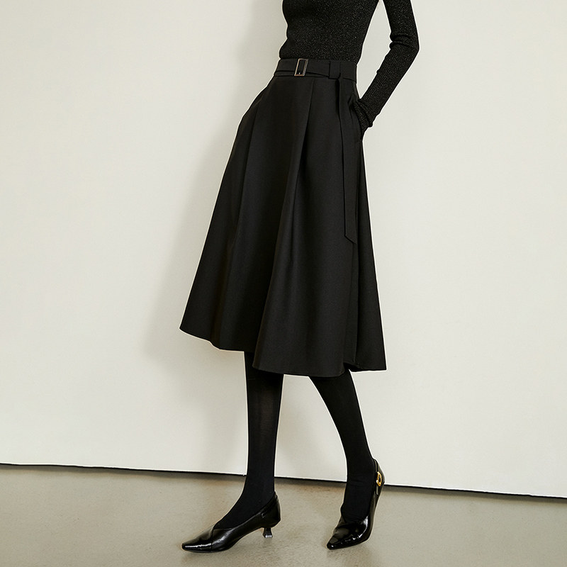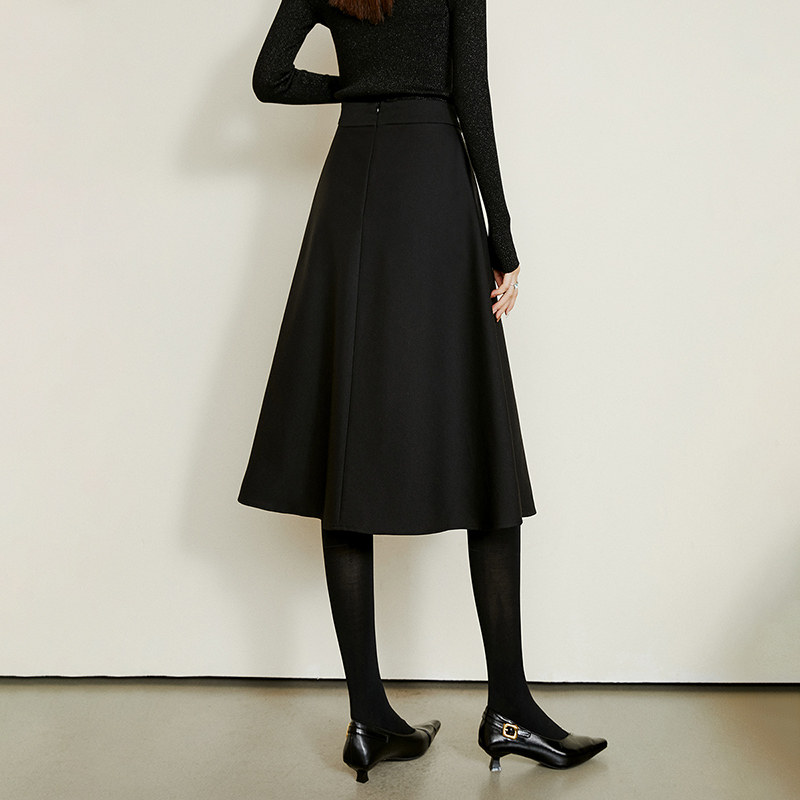 晚白2025秋冬新款时尚简约半裙休闲纯色大摆气质淑女半身裙