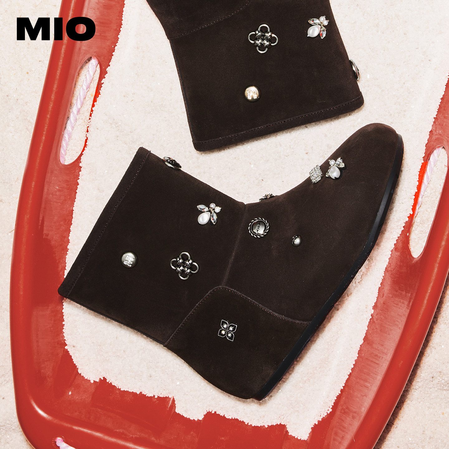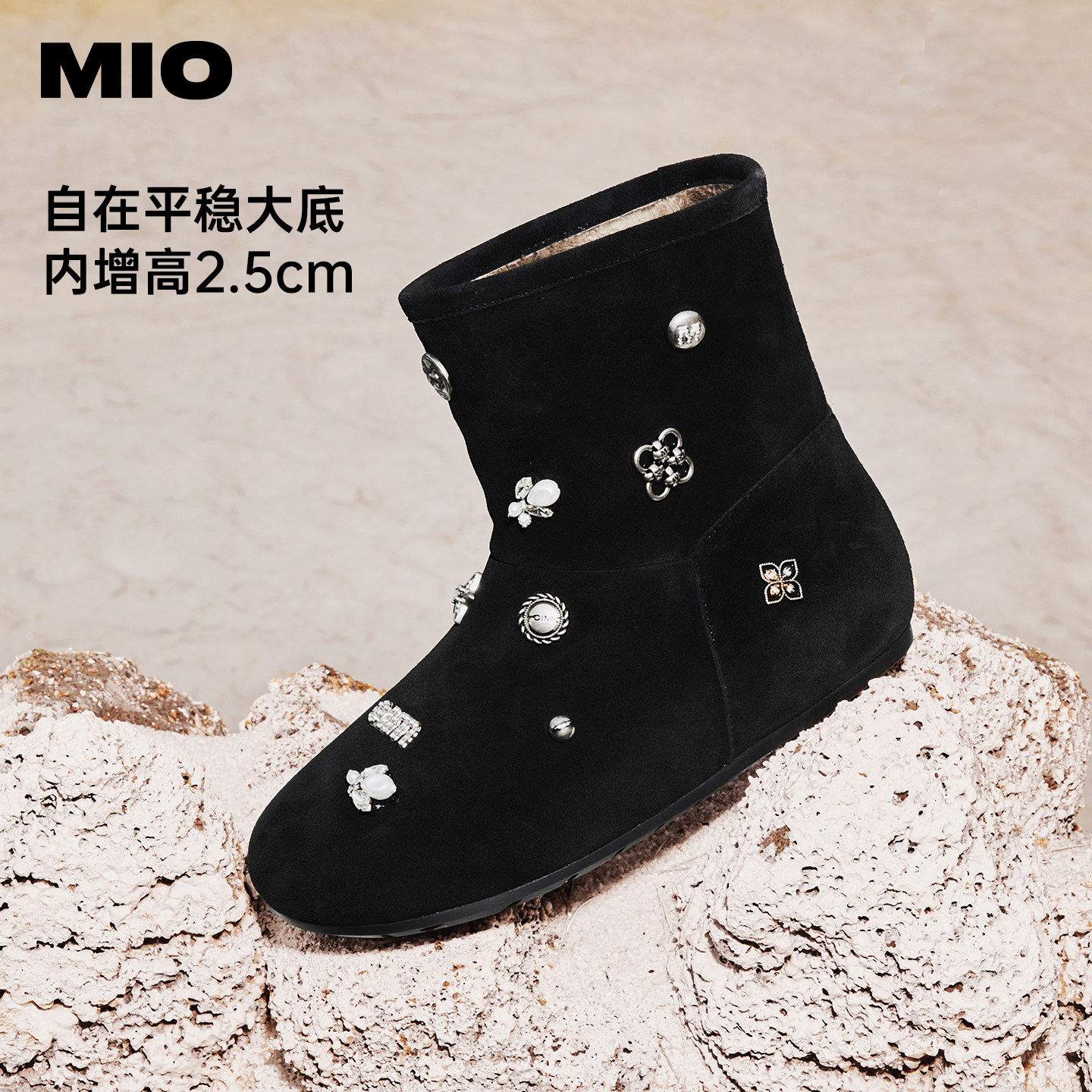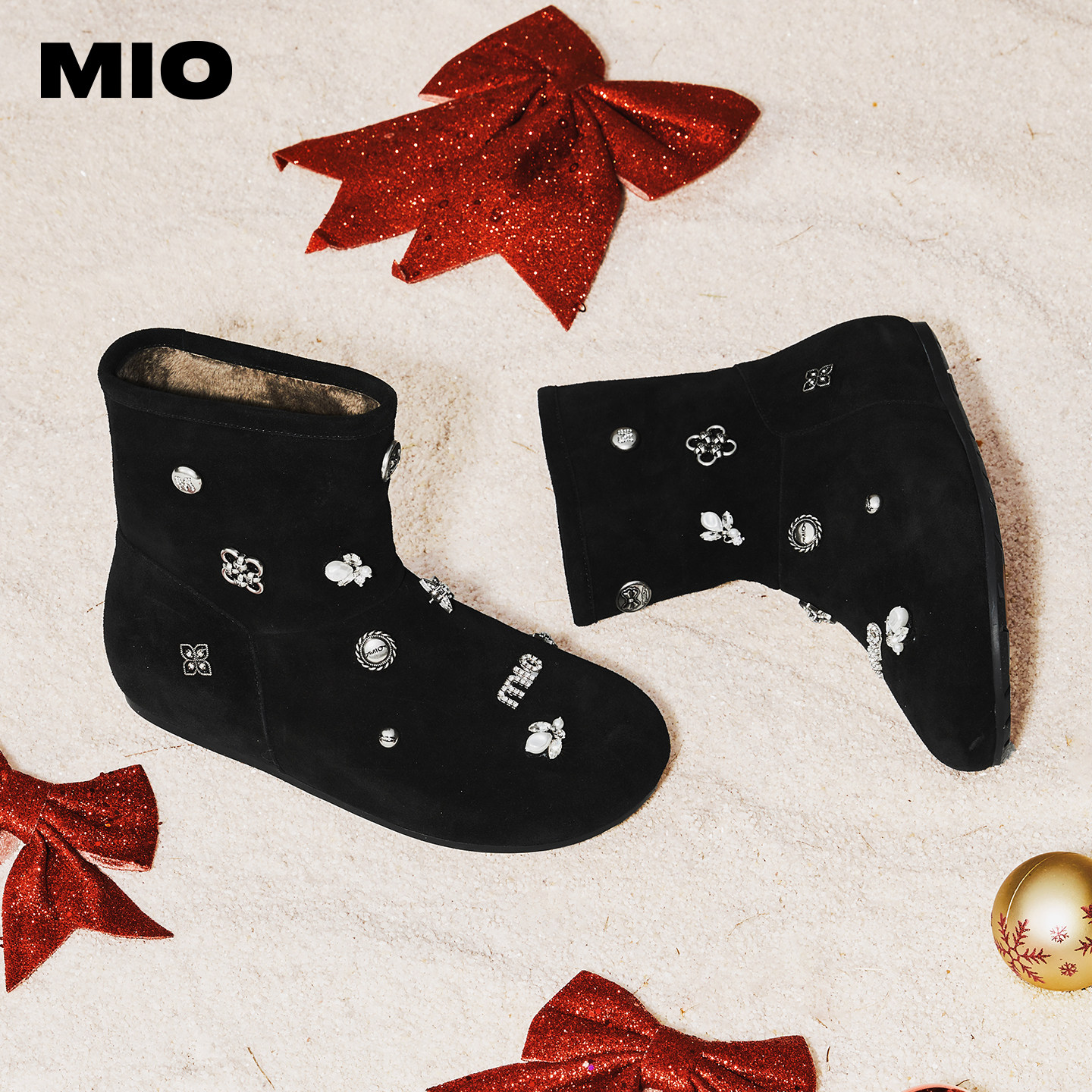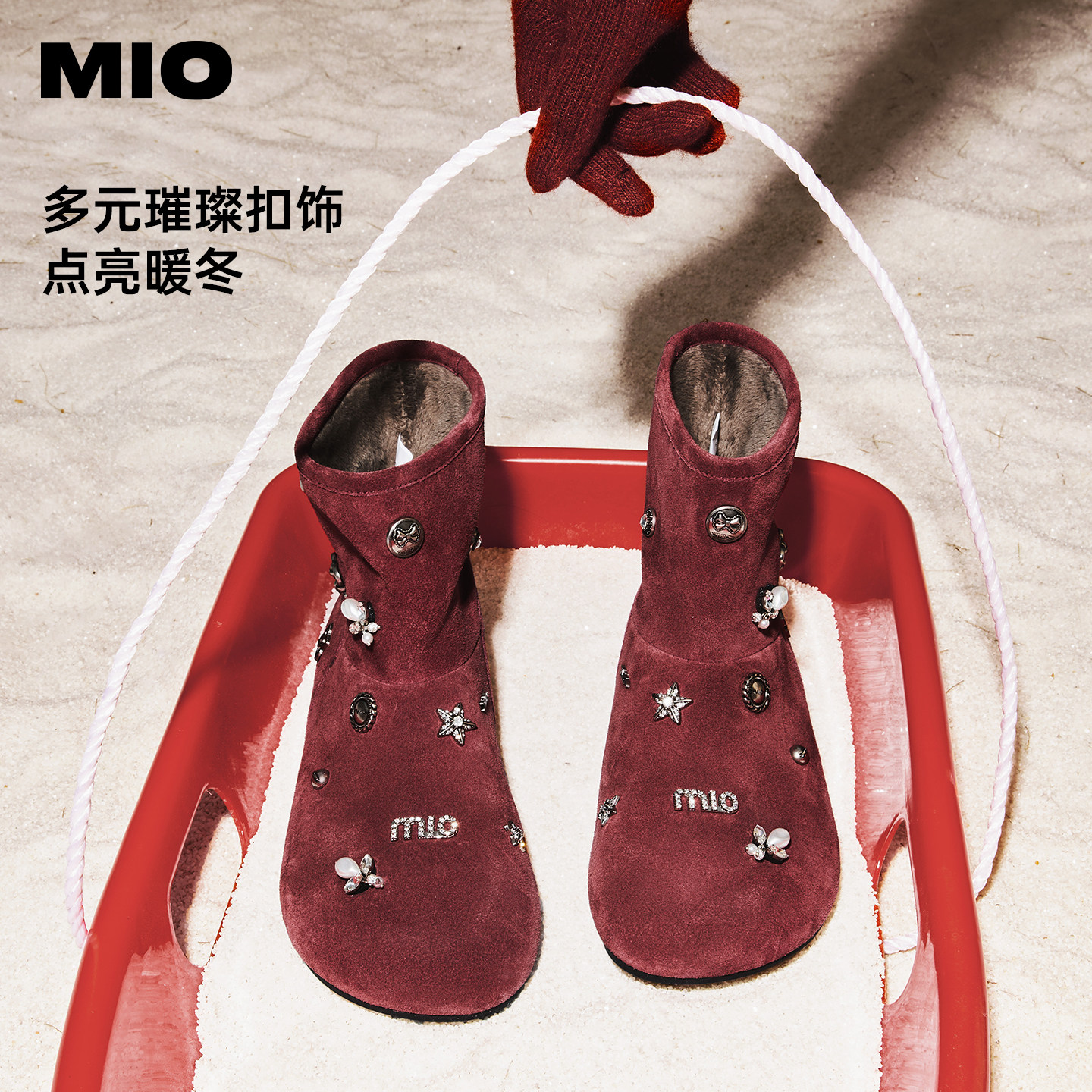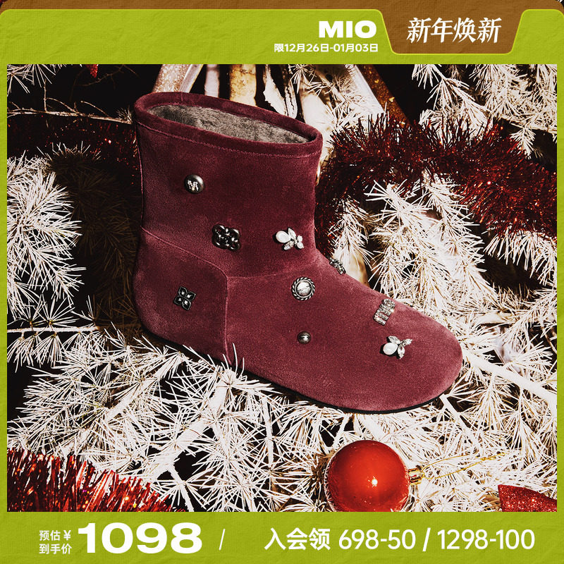 MIO米奥红色雪地靴圣诞2025冬季新款金属饰品保暖圆头短款女靴子